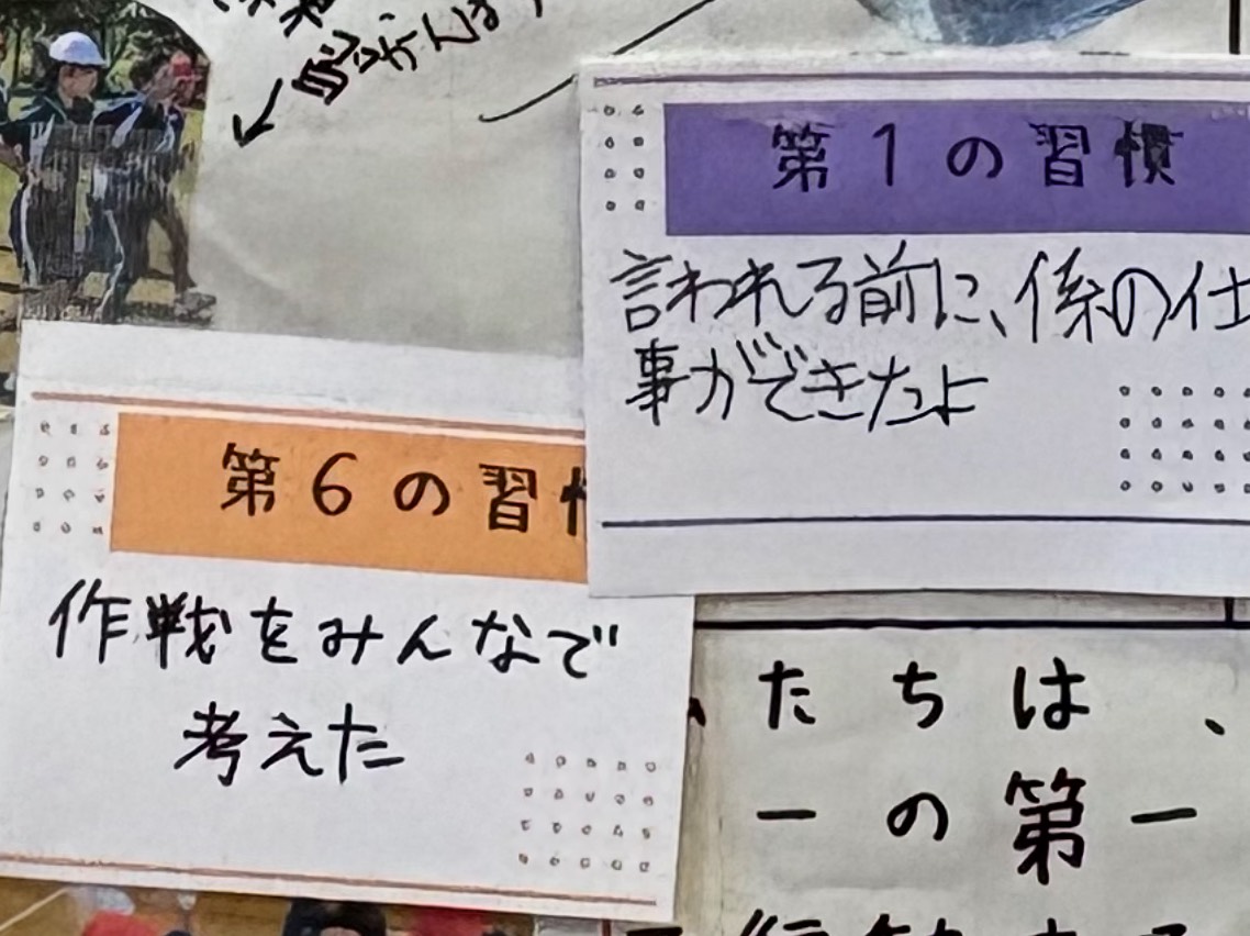 学校に入ると玄関に「みんなでがんばろう!7つの習慣!」